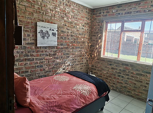 A spacious double-story home with an open-plan lounge, dinning area, large kitchen (gas stove), guest toilet and basin, a main bedroom with a full on-suite. Upstairs is the second open plan bedroom with a queen size bed and a small balcony. Third bedroom is private with a queen sized bed and a small balcony. One bathroom to share between the two upstairs rooms. There is an outdoor braai stand, own parking, and entrance. Google Android TV, Wi-Fi, and an outdoor braai area. ​